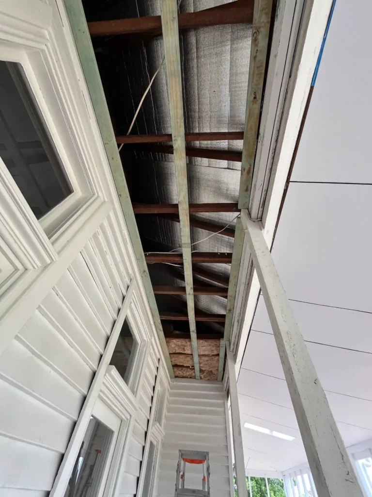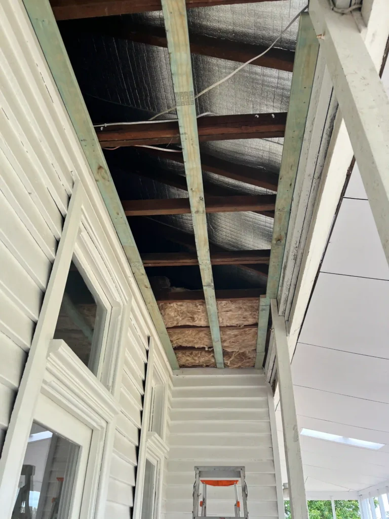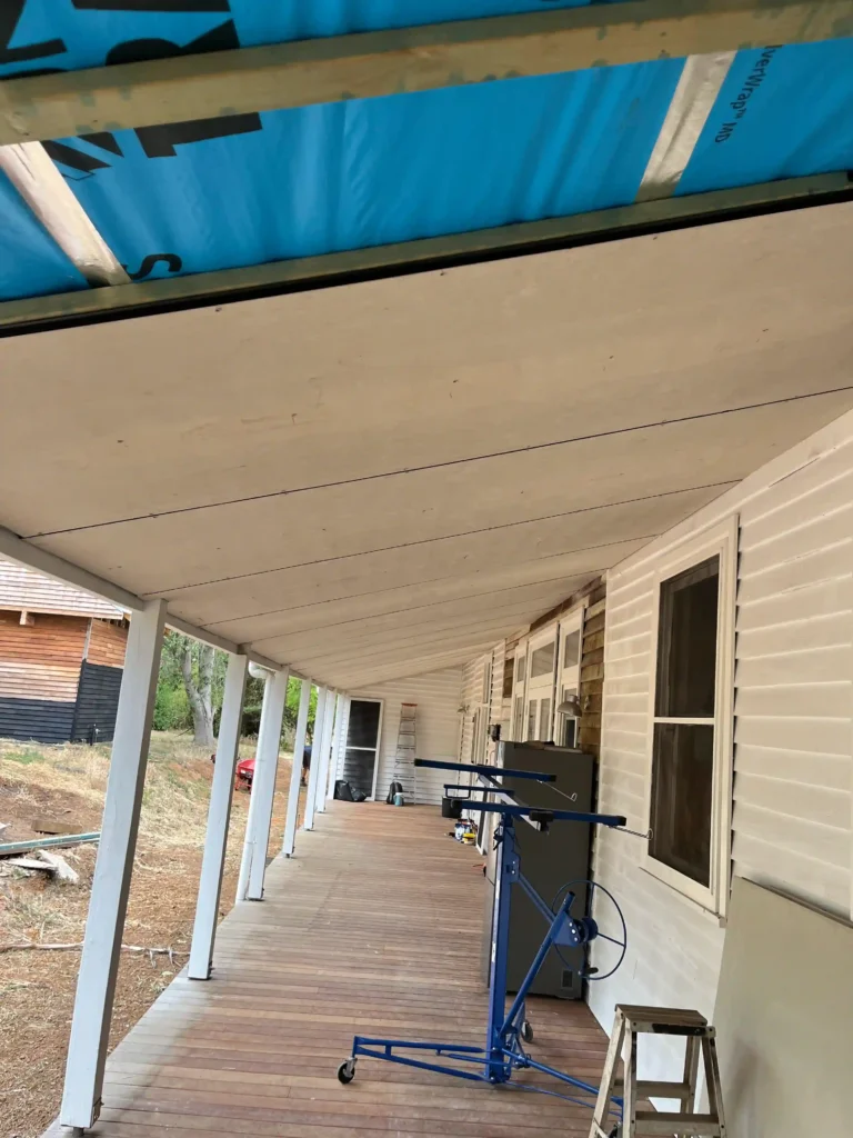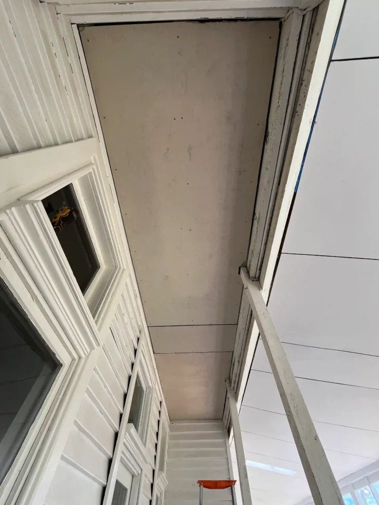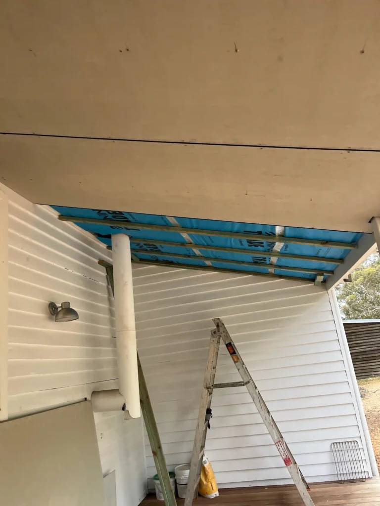 Structural framework installation followed by fiber cement board application for internal ceiling areas. This project enhanced insulation properties and created a clean, professional interior finish.