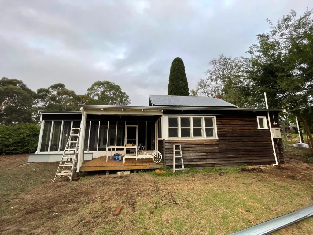 Professional deck enclosure using quality timber battens, creating privacy and wind protection while maintaining the outdoor living experience and architectural appeal.