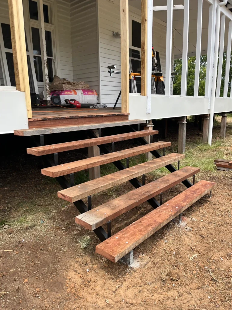 Custom staircase installation utilizing reclaimed original timber from the property. This sustainable approach preserved the home’s character while providing safe and attractive access between levels.
