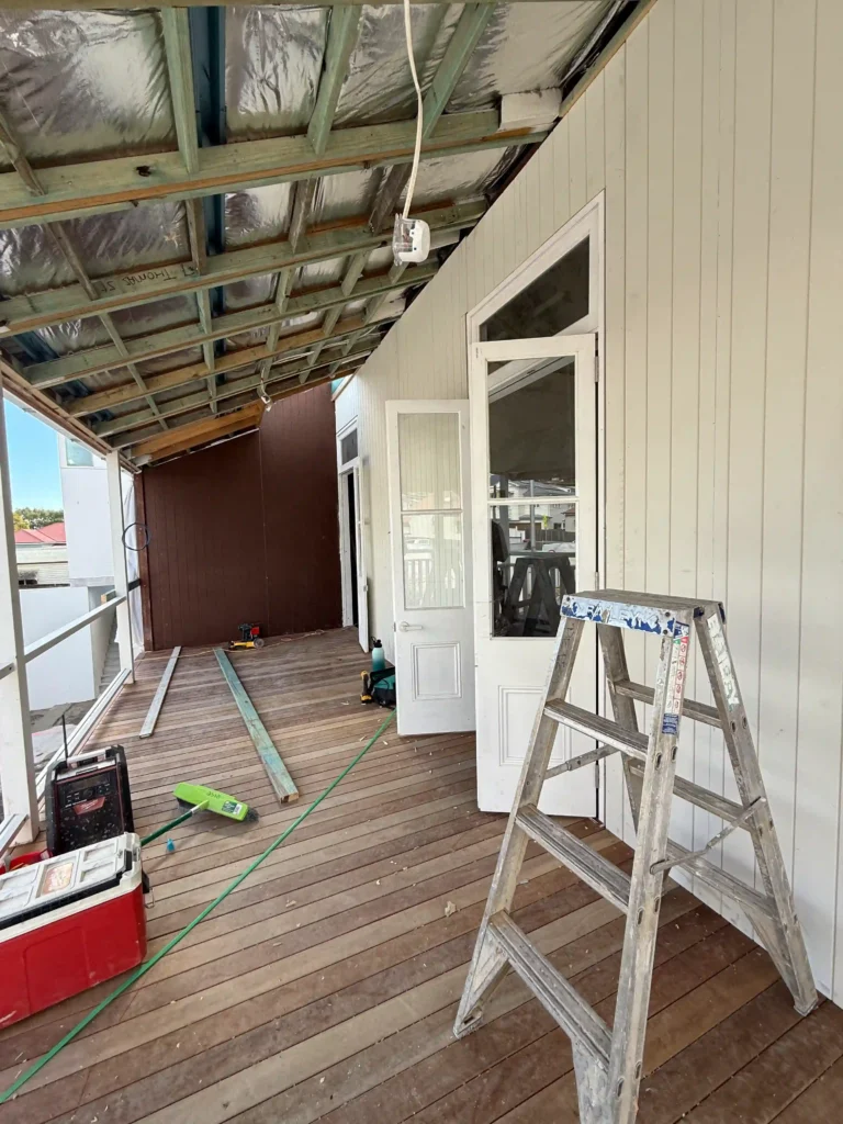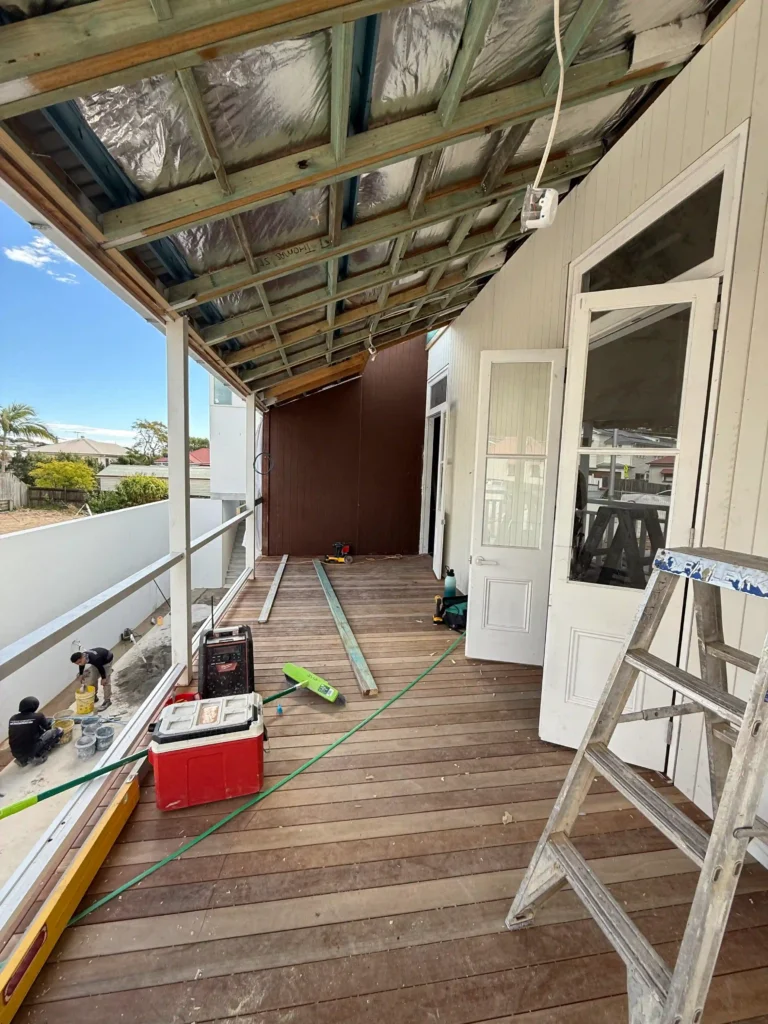 Professional deck enclosure using quality timber battens, creating privacy and wind protection while maintaining the outdoor living experience and architectural appeal.